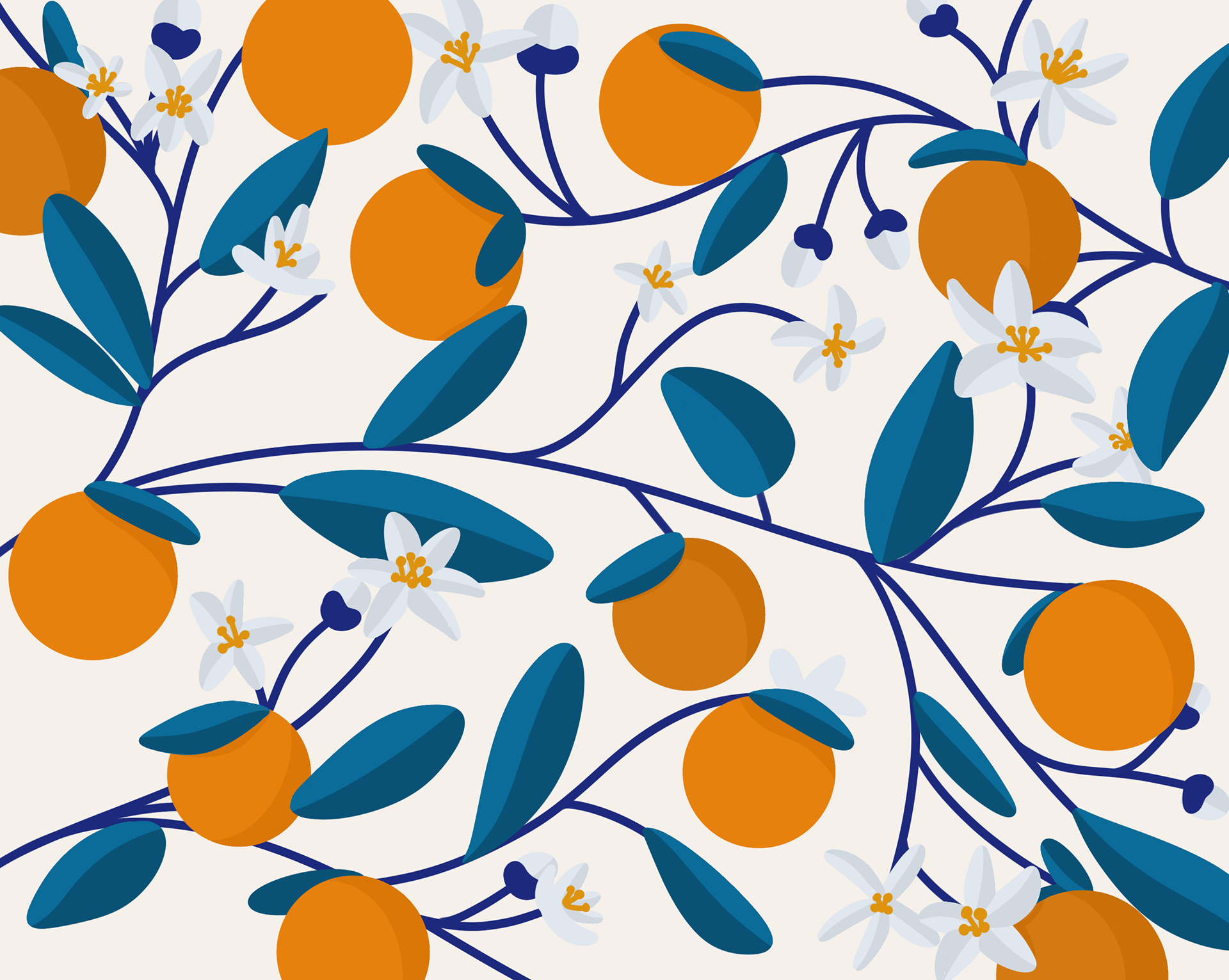 Orange citrus blossoms created with Procreate. Can be used for a LinkedIn banner or a desktop background.